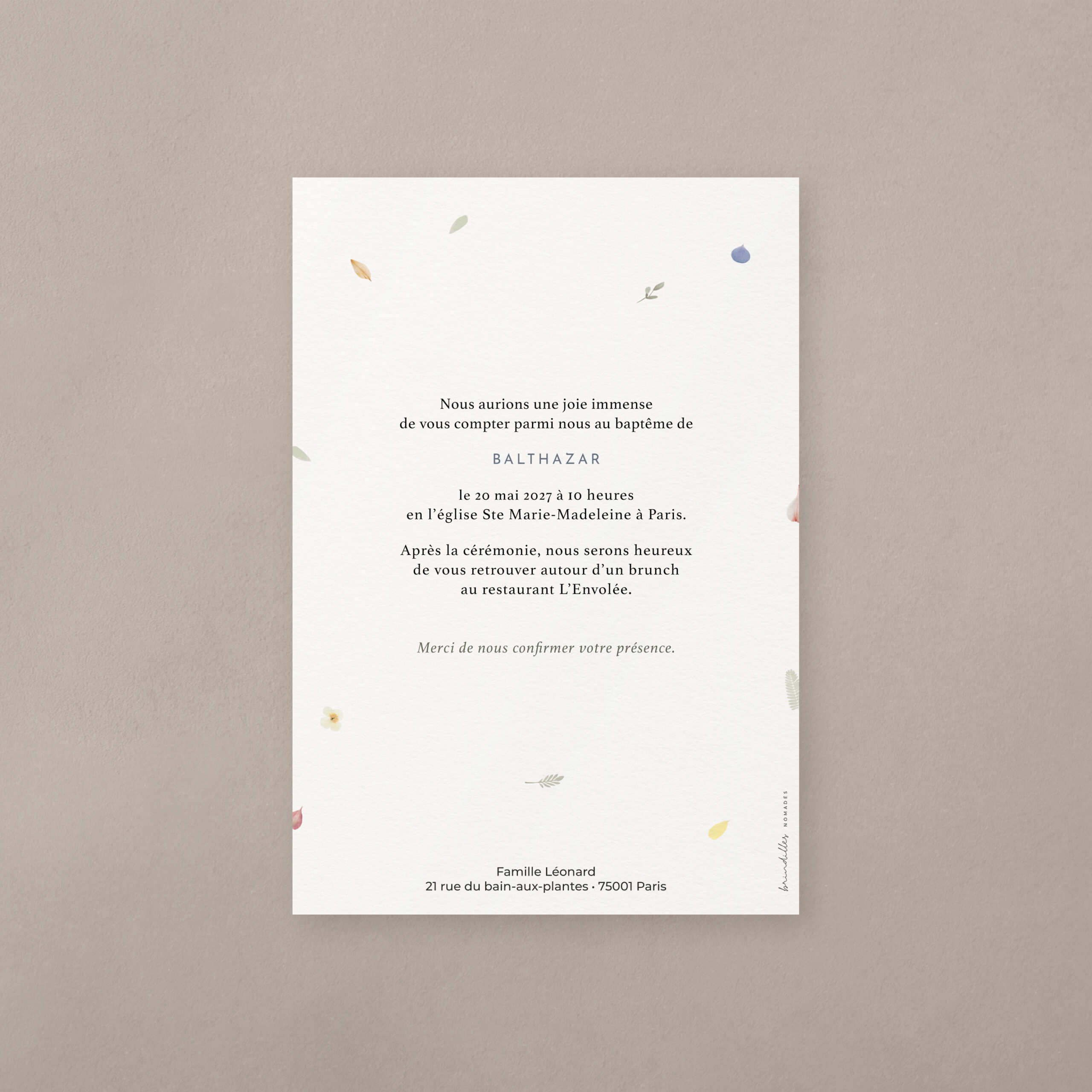 Ce modèle est également déclinable en livret de messe, menu, étiquettes, cartes de remerciements, etc. Il peut aussi être personnalisé selon vos envies, alors n’hésitez pas à nous contacter.