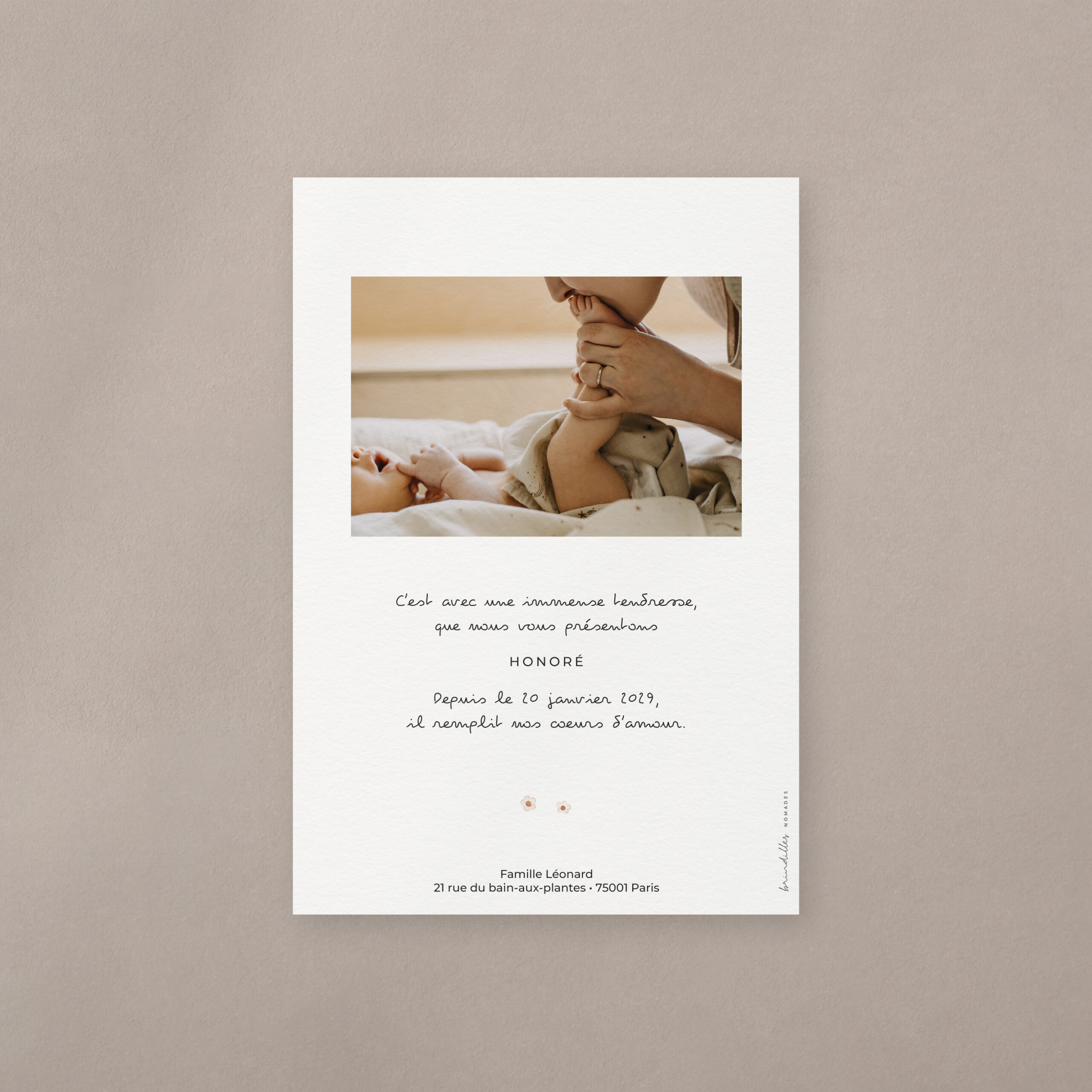 Ce modèle est également déclinable en carte de remerciement. Il peut aussi être personnalisé selon vos envies, alors n’hésitez pas à nous contacter.